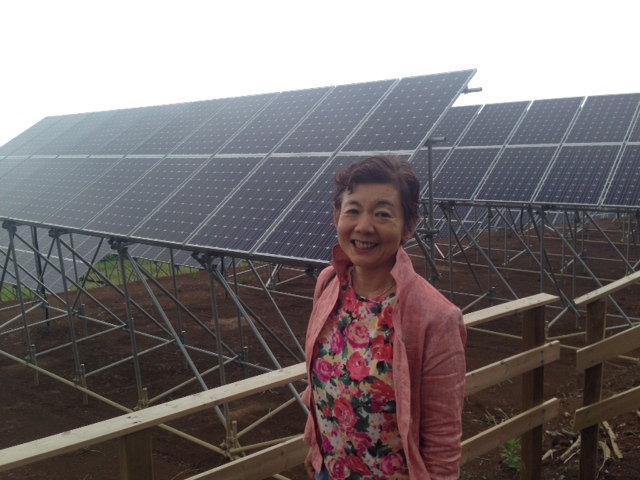 小規模分散型が方針の会津電力だが、雄国発電所だけは資源エネルギー庁の補助金を受ける際の条件との関係で1メガワットのメガソーラーとしたそうだ。3740枚のパネルが並ぶ姿は壮観だった! ここには再生可能エネルギー普及啓発のための体験学習施設も併設されているのだが、施設内に出資者の名前を記名したプレートがある。そこに私の名前を発見、思わず撫でてしまった。私の思いはずっとここで生き続けるのだと思って嬉しかった。